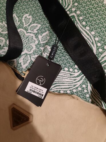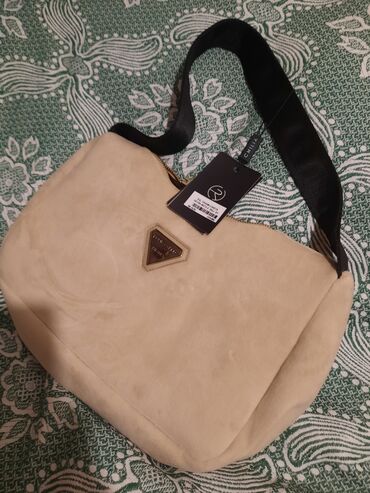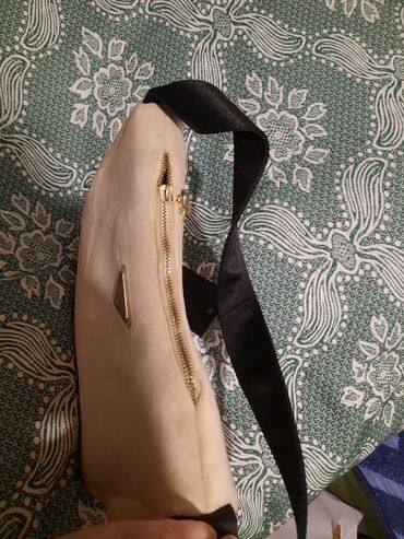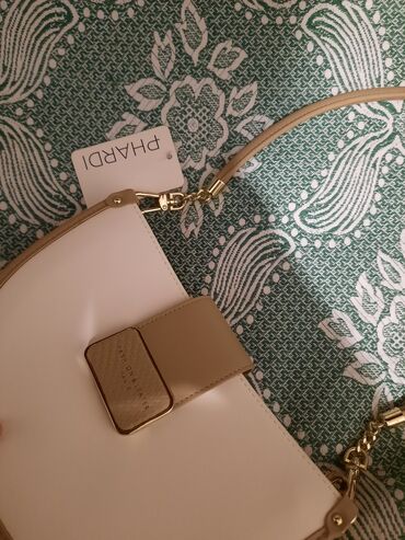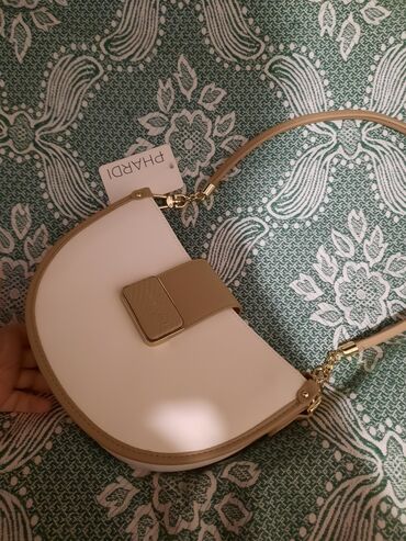 Mini çiyin çantası – “FASHION & BAGS” - Rəng: krem/ivori - Material: tekstura effektli parça və ağ rəngdə ekodəri haşiyələr - Bağlanma: qapaqlı dizayn, maqnitli ön klapan (vizualdan göründüyü kimi...