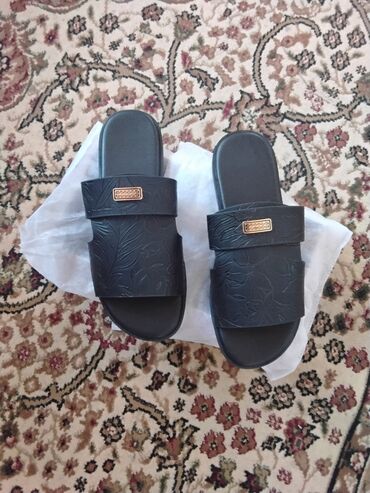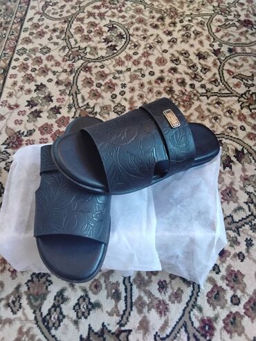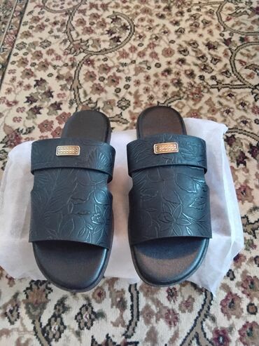 CLOHCO kişi sandal/slipper - Ölçü: 38–39 (dəri) – “ideall” qeyd olunur - Material: yumşaq, möhkəm dəri üstlük; nəfəsalan perforasiya sahələri - Daxili: rahat, anatomik formalı içlik - Altlıq: qalı...