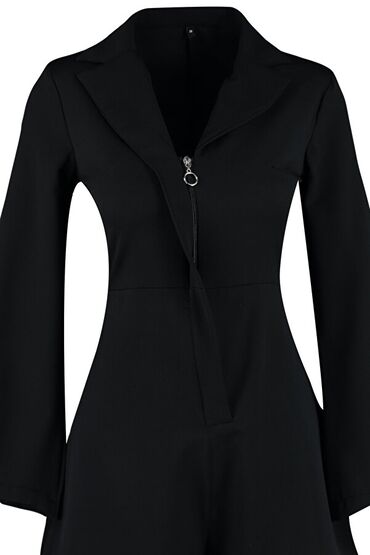 Qara rəngli kombinezon - Model: qısaqol, dairəvi yaxalı - Dizayn
