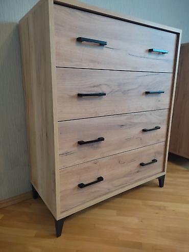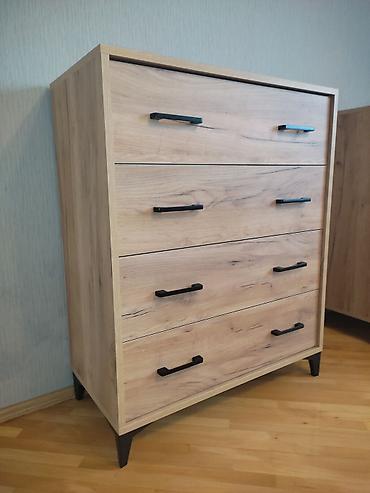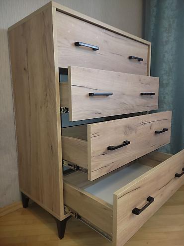 Dörf çekmecəli komod • Ölçülər: dərinlik 40 sm × hündürlük 80 sm × uzunluq 100 sm • Material: açıq ağac teksturalı laminat səth • Furnitura: metal tutacaqlar, səssiz və hamar sürüşən mexanizm ...