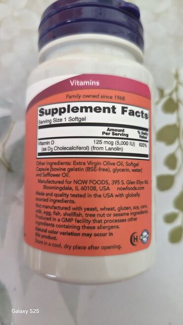 NOW Vitamin D3 – High Potency, 5,000 IU Forması: 120 softgel (yumşaq kapsul) Təyinat: Sümük və immunitet sağlamlığı üçün qida əlavəsi