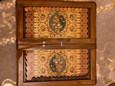 Nard (backgammon) dəsti – Azərbaycan istehsalı, suvenir seriyası - Material: taxta korpus, yüksək keyfiyyətli çaplı dekor. Qapaqda “Baku – Maiden Tower” (Qız qalası) təsviri, iç hissədə Şərq motiv...