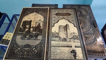 Taxta nərd dəsti – “Qız Qalasının təsviri” - Material: ağac (qapaq və iç hissə taxta çərçivə ilə) - Dizayn: Bakı və Qız Qalası mövzulu oyma/çap ornamentləri, hər iki iç səthdə şəhər panoraması və ...