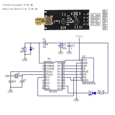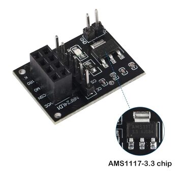 - Adapter lövhəsi NRF24L01 üçün sabit 3.3V təmin edir, mikro-kontrollerlə birləşdirməni sadələşdirir