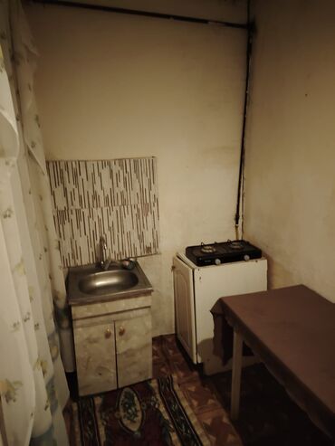 - Mətbəx küncü: kiçik ayrıca sahə, mətbəx çanağı olan dolab, ikiqazlı plitə, masa, pərdə