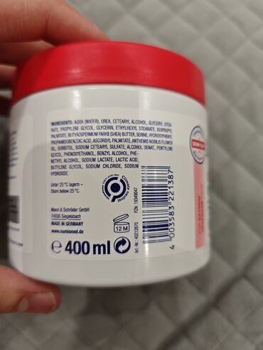 - Tərkibin əsas komponentləri: su, urea, qliserin, shea yağı (Butyrospermum Parkii), süd turşusu (Lactic Acid), panthenol yoxdur; spirt, qliseril stearat və s. (etiketdə qeyd olunduğu kimi).
