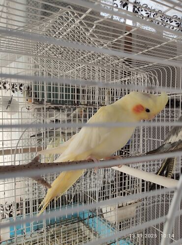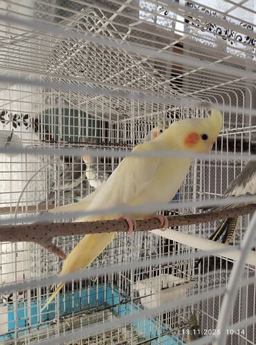 Quslar hazır cutdu (Cockatiel) cütlüyü və qəfəs dəsti - Növ: Nimfa tutuquşusu (cockatiel) – sarı xallı yanaqlar, başda sarı çəngəlli təpə, biri açıq-sarı, digəri boz-ağ ləkəli rəngdə - Cüt olaraq...