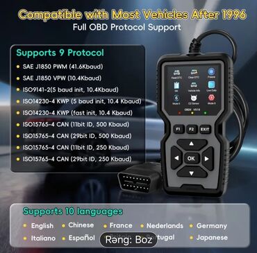 - OBD-II standartını dəstəkləyən avtomobillərdə mühərrik və emissiya sistemlərinin diaqnostikası, hazır olma testləri və kodların operativ yoxlanması/silinməsi üçün.