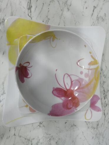 Yeni almaniya istehsali 12 neferlik yemek ve chay desti. İstifade olunmayib oz original baglamasindadir. Falkenporzellan brendi