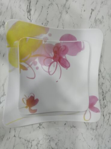 Ağ şüşə/porşelen desert boşqaqlar hem derin hem dayaz kimi isdifade elemek olur,,,tezedir hamsi 20 manata 8 denedir...