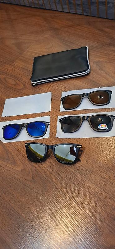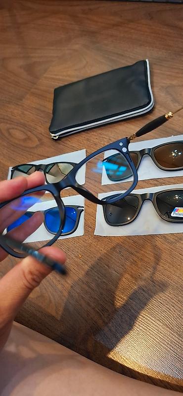 4 nasadkadan ibarət eynək. Təzədir. 100 azn-e alinib. Nasadkalar maqnit vasitesile eyneye yapisir. Gozunde zeifliyi olan eyneyin seffaf susesini optik suse ile de evez ede biler. Qiymet sondurrrr!!!!!! Qiymete gore narahat etme! Unvan 28