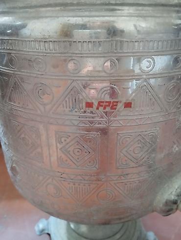 Qədimidir, 7 litrlikdir, gümüşü rəng, tarixi artefakt ve ya kolleksiya əşyası kimi deyerlendirilir.Tula üslubunda hazirlanib. Sovet dövrünə aiddir. Qiymet 4000 manat.