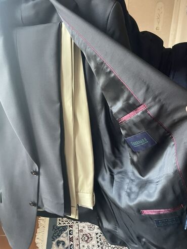 Kişi kostyum dəsti - Stil: Klassik, dar kəsim (slim fit) iki düyməli pencək və uyğun şalvar - Rənglər: Qara, tünd göy və qrafit tonları - Pencək: Notch yaxalıq, sinədə düyməsiz büzmə cib (breast p...