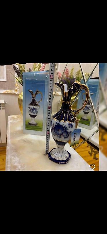 Məhsul: Dekorativ vaz(sınığı var) Təsvir: - Material: Şüşə/porşelen görünüşlü, parlaq səth - Rəng: Tünd göy (kobalt) əsas ton, üst kənarda qızılı haşiyə - Bəzək: Boyun hissəsində zərif qızılı orna...