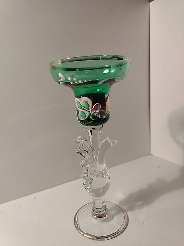 - Material: şəffaf şüşə/xruştal gövdə, yaşıl rəngli şüşədən geniş ağızlı kasa hissə