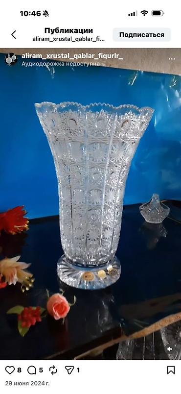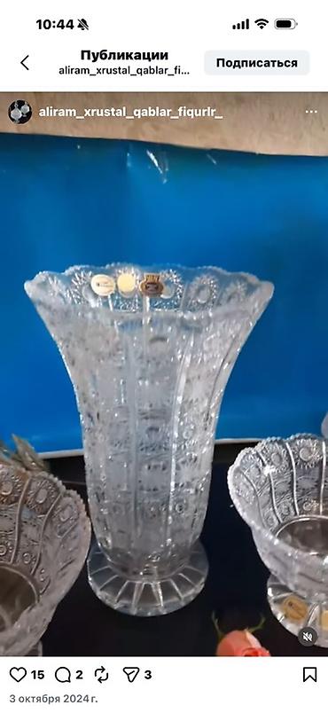 Kəsimli kristal vaza Rusiya istehsalıdır. Yenidir istifadə olunmayıb - Material: şəffaf, ağır kristal şüşə - Ölçü : hündürlük ~35sm, ağzın diametri ~ 45 sm diger bala...