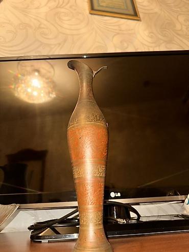 orginal Hindistan məhsuludur Misgər işləməli dekorativ metal vaza - Material: bürünc/metal ərintisi - Rəng palitrası: antik tonda mis-bürünc əsas, yaşılımtıl, tünd mavi və qırmızı rəngli əl naxı...