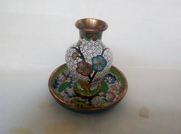Məhsul: Rəngli cloisonné (emal naxışlı) mis vaza və boşqab dəsti balaca hündürlüyü -8sm, nəlbəki -9sm, təzə-120m, Böyük hündürlüyü -20sm =140m