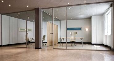 - Şüşə arakəsmələr: təkqat və ikiqat temperli şüşə variantları, şəffaf/mat/saten plyonka tətbiqi imkanı
