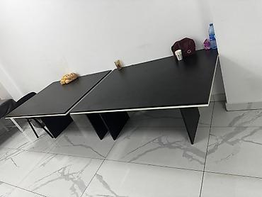 - Ölçü təxmini: hər masa təxminən 150 sm en, 110 sm dərinlik; iki masa yanaşı istifadə oluna bilər