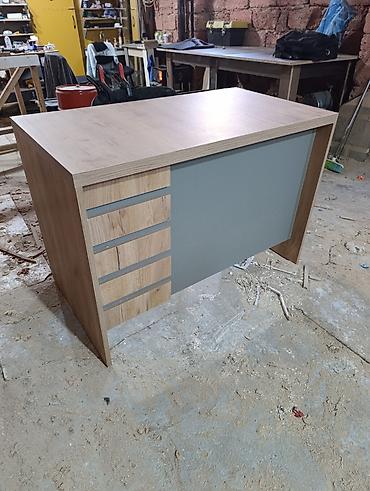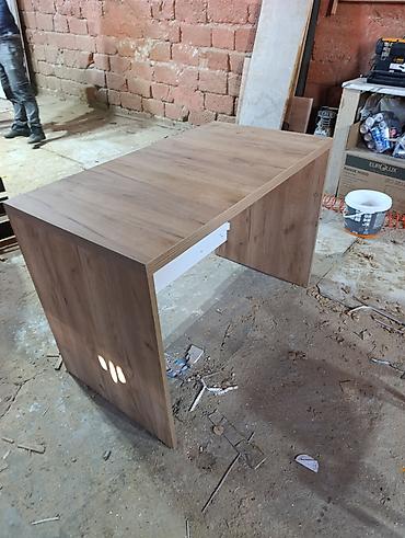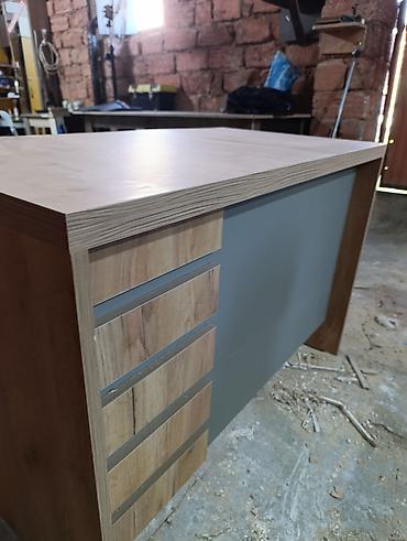 - Material: Laminat/LDSP ağac teksturalı səth, kənarlarda möhkəm kant. Üst tabla geniş və hamar, yazı və kompüter üçün rahat iş sahəsi yaradır.