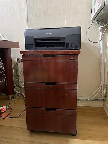 - Tekerli tumbab: 3 çekmecəli, tünd qırmızı korpus, gizli tutacaqlar. Ofis texnikası üçün üst platforma.