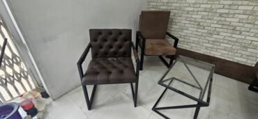 - 2 ədəd sadə dizaynlı, parça örtüklü kreslo, qara metal karkas.