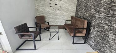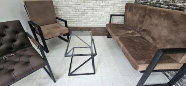 - 1 ədəd şüşə orta masa: Şəffaf temperli şüşə üst, qara metal “Z” formalı altlıq – qəbul zonası və istirahət guşələri üçün ideal.