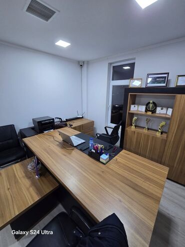 - Geniş rəhbər masası: iri iş səthi, L‑şəkilli əlavə modul, kabel keçidləri üçün rahat yerləşim. Üstündə yazı alətləri üçün təşkilatçıya uyğun en.