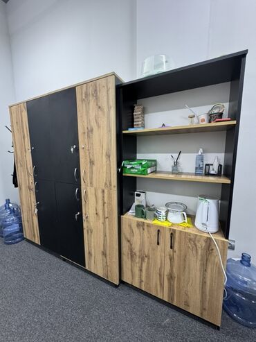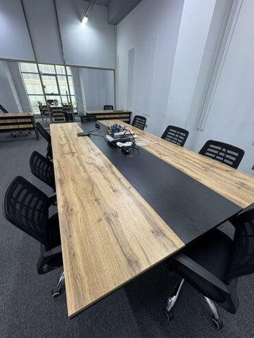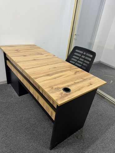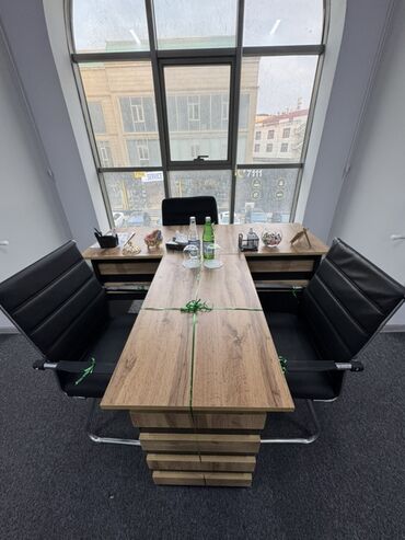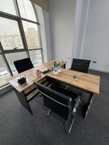 Ofis mebel dəsti Tərkib: - Geniş əmək masası – düz xəttli dizayn, ön paneldə qara dekor elementləri - Yan “L” tipli köməkçi masa (kompyuter, printer və ya sənədlər üçün) - Kiçik jurnallıq/qarşılam...