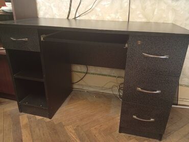 Yazı masası ideal vəziyyətdə 1,10 m × 0,60 3 siyirtməli. 1 siyirtmə açarlı.