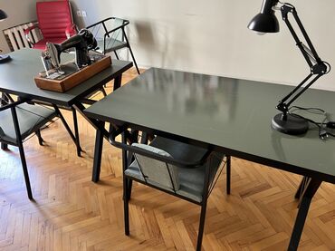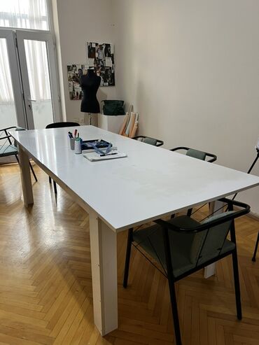 Ofis mebel dəsti Tərkib: - Geniş əmək masası – düz xəttli dizayn, ön paneldə qara dekor elementləri - Yan “L” tipli köməkçi masa (kompyuter, printer və ya sənədlər üçün) - Kiçik jurnallıq/qarşılam...
