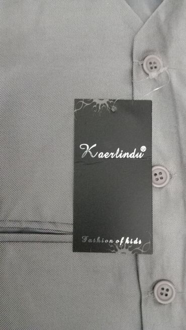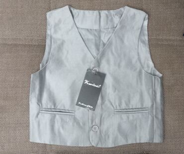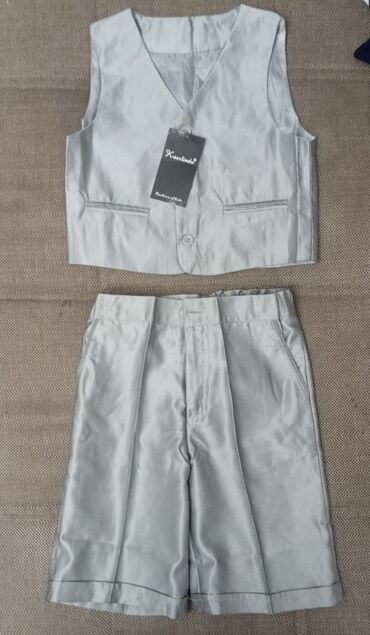 Oğlan uşağı üçün dəst – 4 parçadan ibarət: - Naxışlı göy-qara rəngdə xətli (çəkməli) şalvar - Eyni parçadan düyməli jilet (V-yaxa, yan cib detalları, dekorativ döş cibində üçbucaq dəsmal detalı) - ...