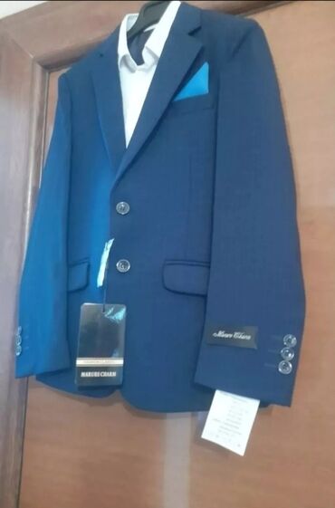 - Komplekt: pencək + ağ köynək + kravat (şəkildə mavi naxışlı kravat görünür)