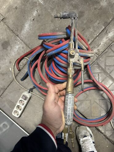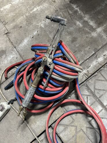 - Qırmızı (asetilen) və mavi (oksigen) rəng kodlu qalın divarlı şlanqlar – çoxsaylı metrlərlə, emalatxanada sərbəst hərəkət imkanı yaradır.