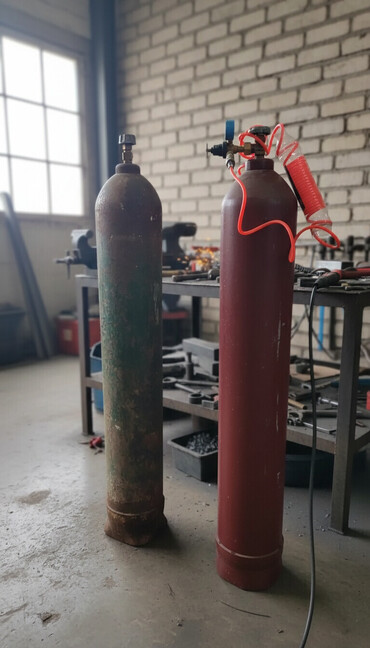 - 2 ədəd metal qaz balonu: biri yaşıl rəngdə, digəri qırmızı rəngdə