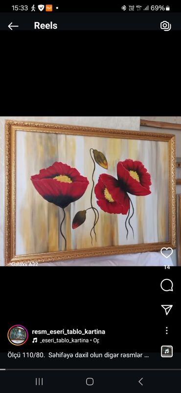 Ölçü 75/75. Səhifəyə daxil olun digər rəsmlərə baxa bilərsiniz. Real alıcılara endirim olacaq. Kətan parça üzərində yağlı boya ilə çəkilmiş rəsm əsərləri. Yeni çəkilib, professional rəssamın əl iş...