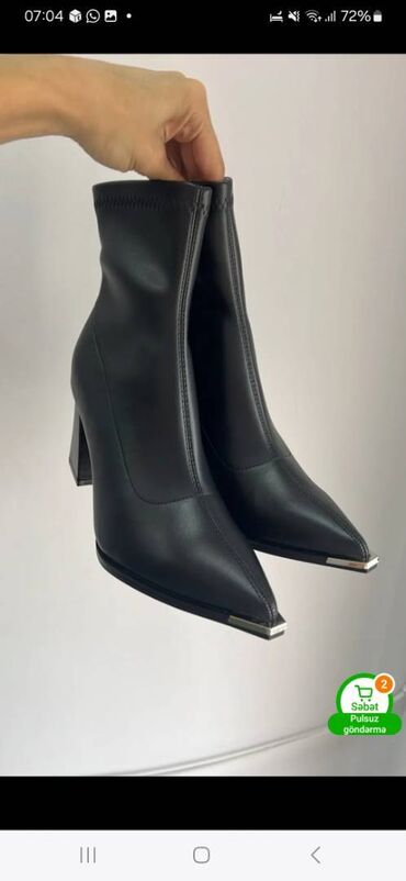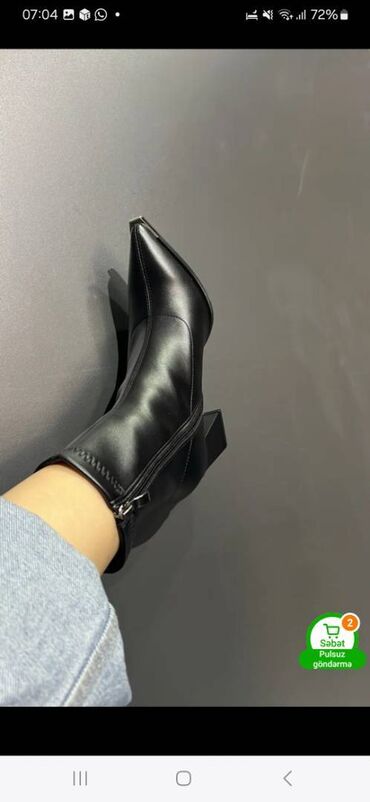 Qadınlar üçün dəbli qısa çəkmələr - Material: yumşaq nubuk , brend Sandro Vicari italiya - Rəng: tünd boz-bənövşəyi ton - Dizayn: ön hissədə geniş laklı dəri qayış və iri metal toka; tokada dekora...