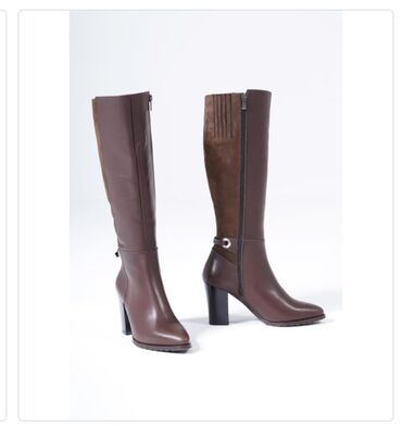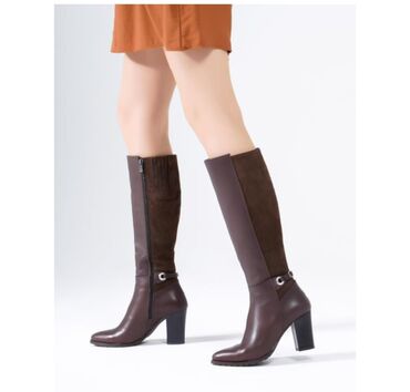 Qadın uzun temiz dəri çəkmə baha alınıb - Rəng: tünd qəhvəyi -