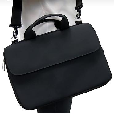 Noutbuk çantası – klassik qara rəngdə - Material: sıx toxunmuş, suya davamlı parça - Ölçü: təxminən 15–16 düymlük noutbuklar üçün uyğun (düzbucaqlı geniş bölmə) - Daxili: əsas yastıqlı bölmə, əlav...