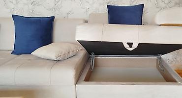 Künc divan – 300₼ - Açılan, bazalı model: həm oturma, həm də yatmaq üçün rahatdır; bazası əlavə əşyaların saxlanması üçün yararlıdır. - Ölçü: 240 x 150 sm. - Rəng: tünd mavi/ətirli göy tonlarda, d...