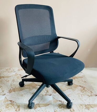 Qara rəngli, tor arxalıqlı ofis kreslosu. Kreslo tənzimlənən oturacağa və hündürlüyə malikdir. Beş ulduzlu xrom baza üzərində yerləşən təkərləri sayəsində asanlıqla hərəkət etmək mümkündür. Ofis mü...
