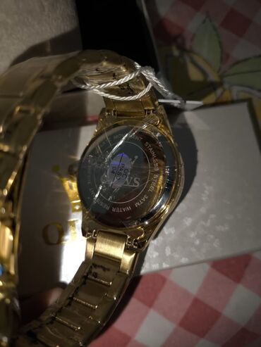 - Korpus və qolbaq: qızılı rəng, paslanmayan poladdan