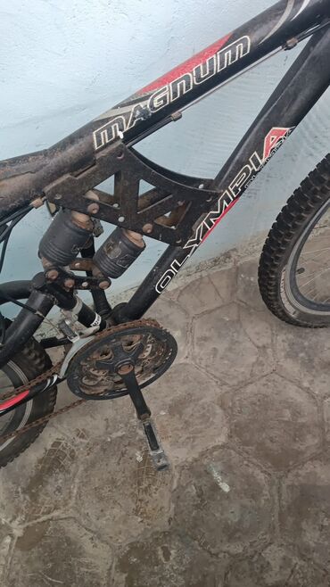 Dağ yolları və şəhərdaxili sürüşlər üçün uyğun konstruksiya: qaba və arxa amortizasiya, qalın protektorlu şinlər, çoxsürətli ötürmə sistemi. Model etiketi və yazılar: “OLYMPIA”, “MAGNUM”.