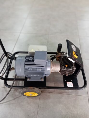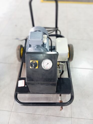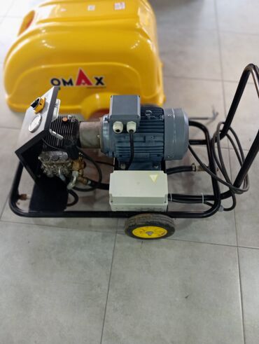 Qeyd: Şəkillərdə göstərilən bütün komplektasiya – arabacıq şassi, elektrik mühərriki, yüksək təzyiq nasosu, manometrli idarə paneli və OMAX qoruyucu örtük.
