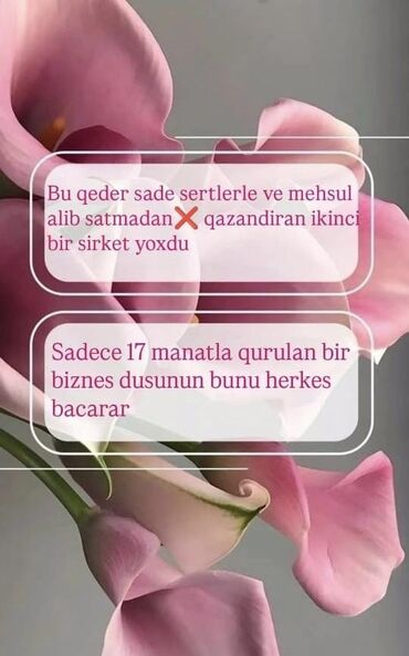 Yalnız 17 manatla qurulan sistemlə hər kəs üçün əlçatan biznes modeli. Sistem qurmaq və əlavə məlumat üçün şəkillərdə göstərilən WhatsApp üzərindən yazın.