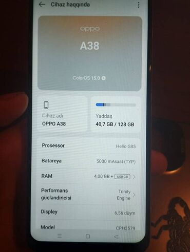 Oppo A38, 128 GB, Barmaq izi, Face ID, İki sim kartlı