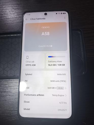 Oppo A58 Blue çox ela vezyetdedir.256gb yaddaşa malikdir.Ciddi alıcıya endirim olacaq