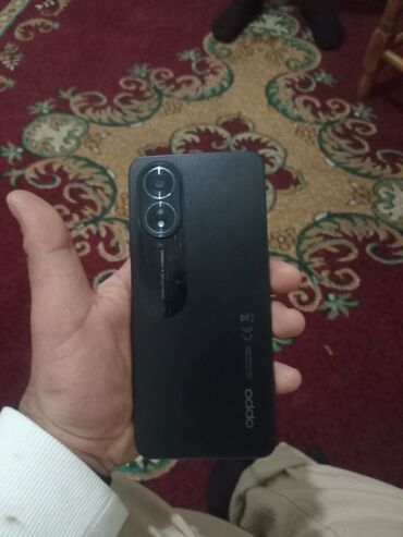 Oppo a 3 128yadas 12 ram 3 ayin telofondu - Brend/model: Oppo (arxa qapaqda “Oppo” loqosu, model kodu CPH… görünür) - Rəng: tünd boz/qara - Ekran: çərçivəsiz dizayn, mərkəzdə punch‑hole ön kamer...