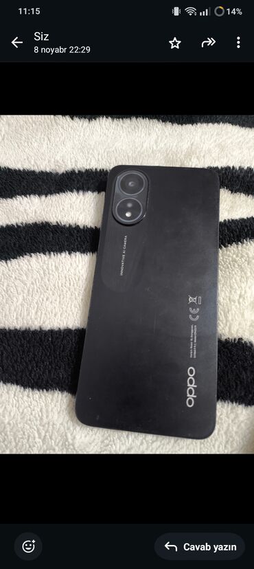 Oppo smartfon Karopası adaptor var az istifade olunub sağ asaqı hissede azca cızıq kimi birsey var xanım işledib - Rəng: qara, mat arxa səth - Arxa kamera bloku: iki dairəvi modul (1 əsas kamera ...